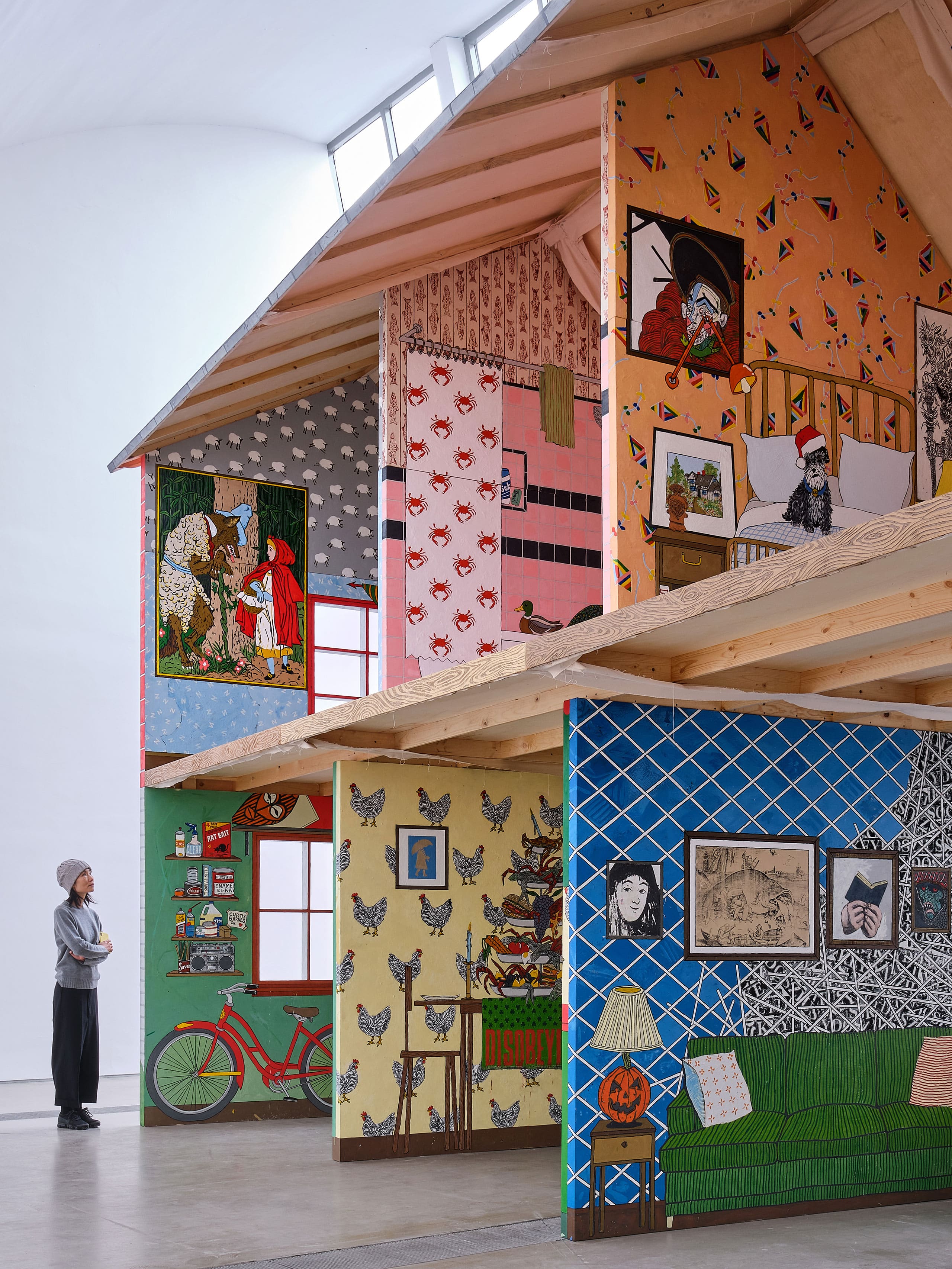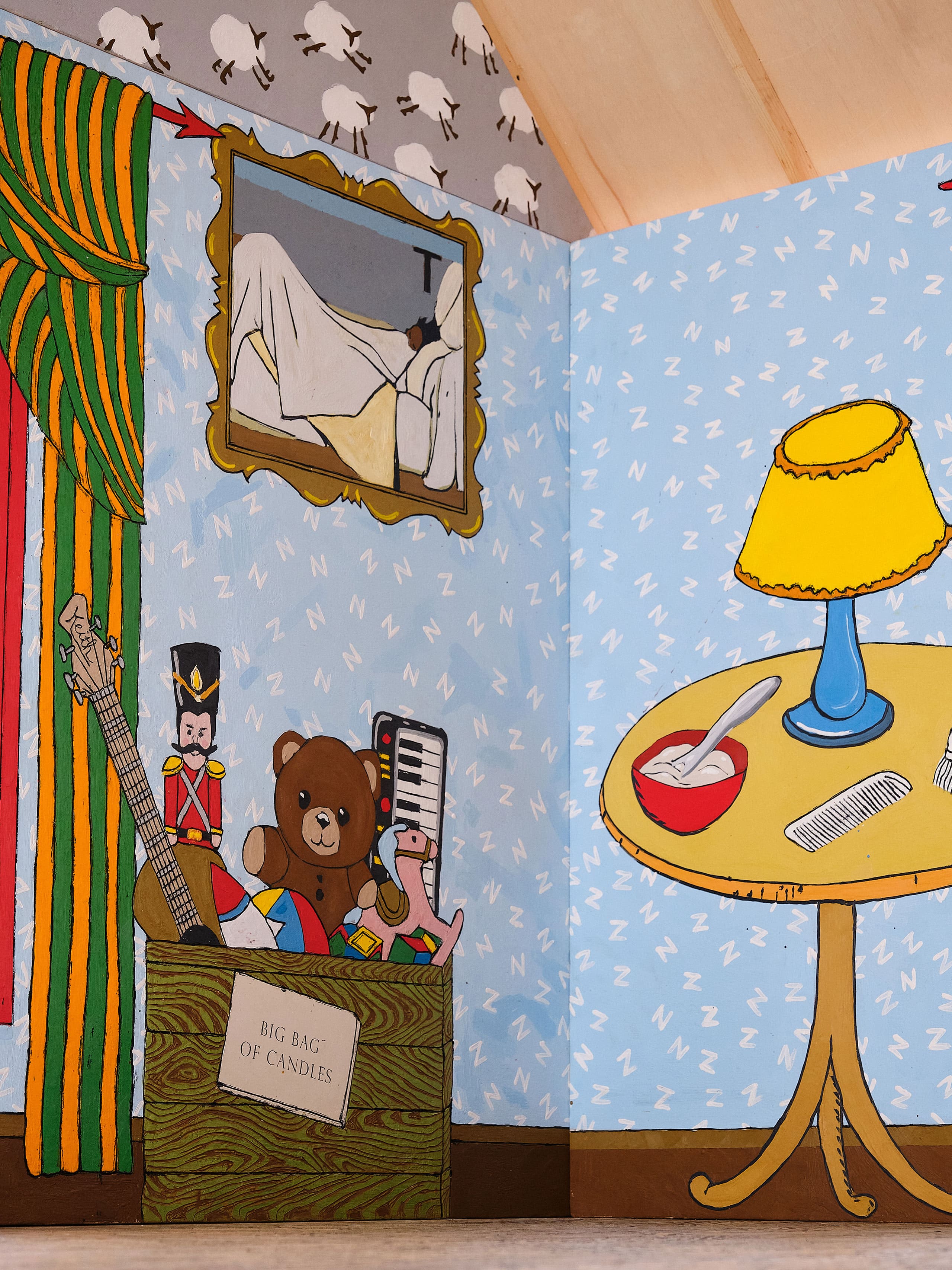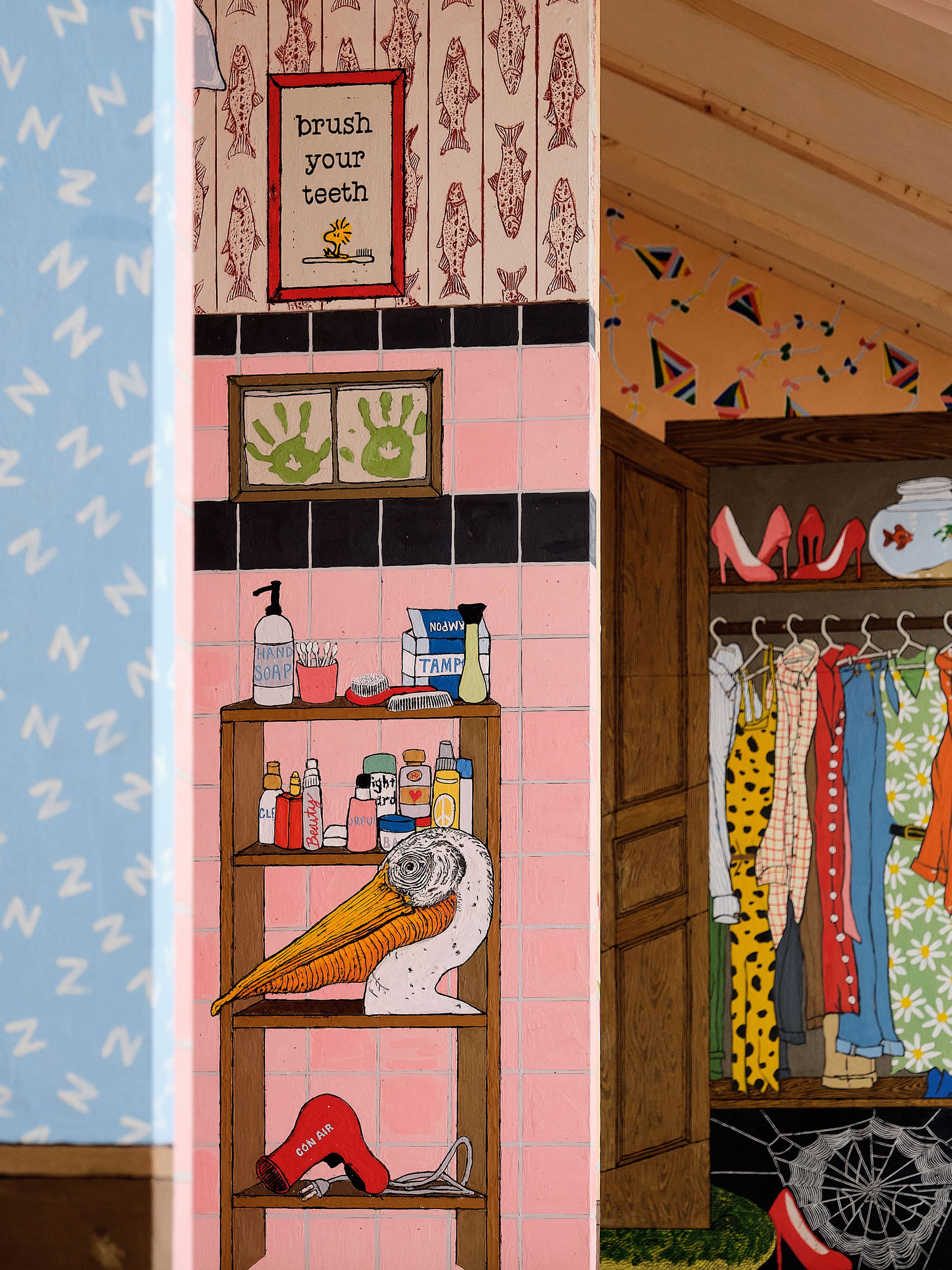 Hence, for 15 years he dreamed of bringing the house to life and to its full potential. Instead of recreating a version of the house in a painting, Armstrong decided to make a life-size installation, which contains both an elaborately painted outdoor facade and the interior part.