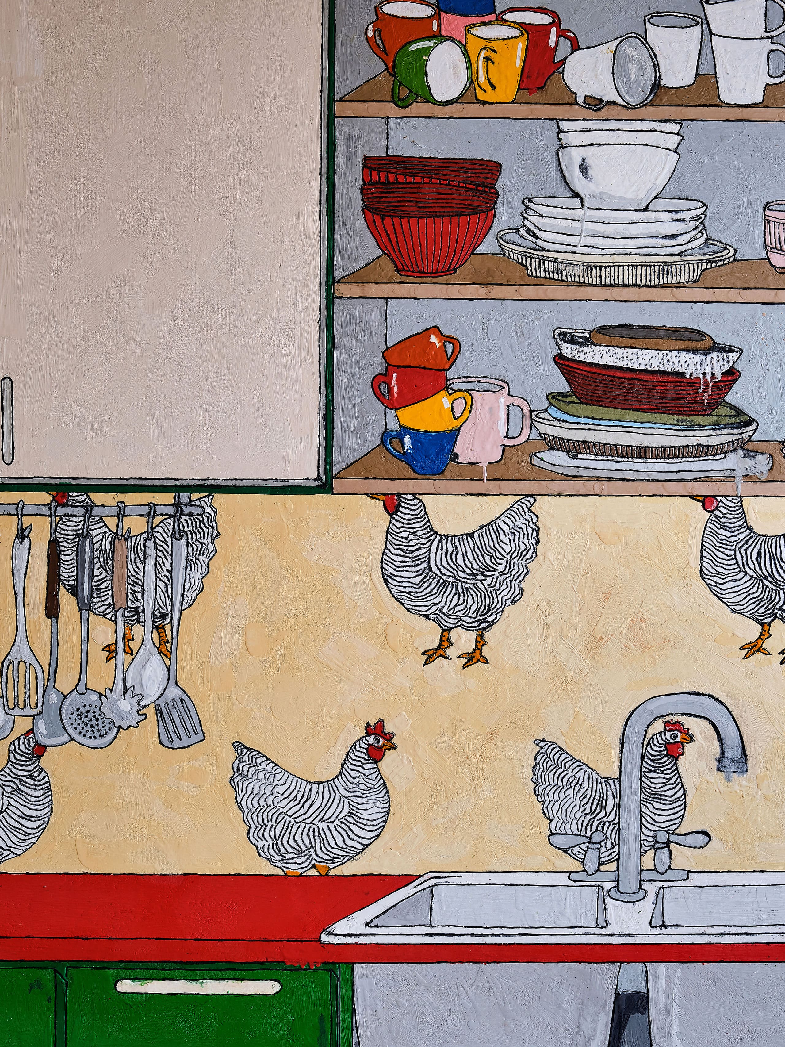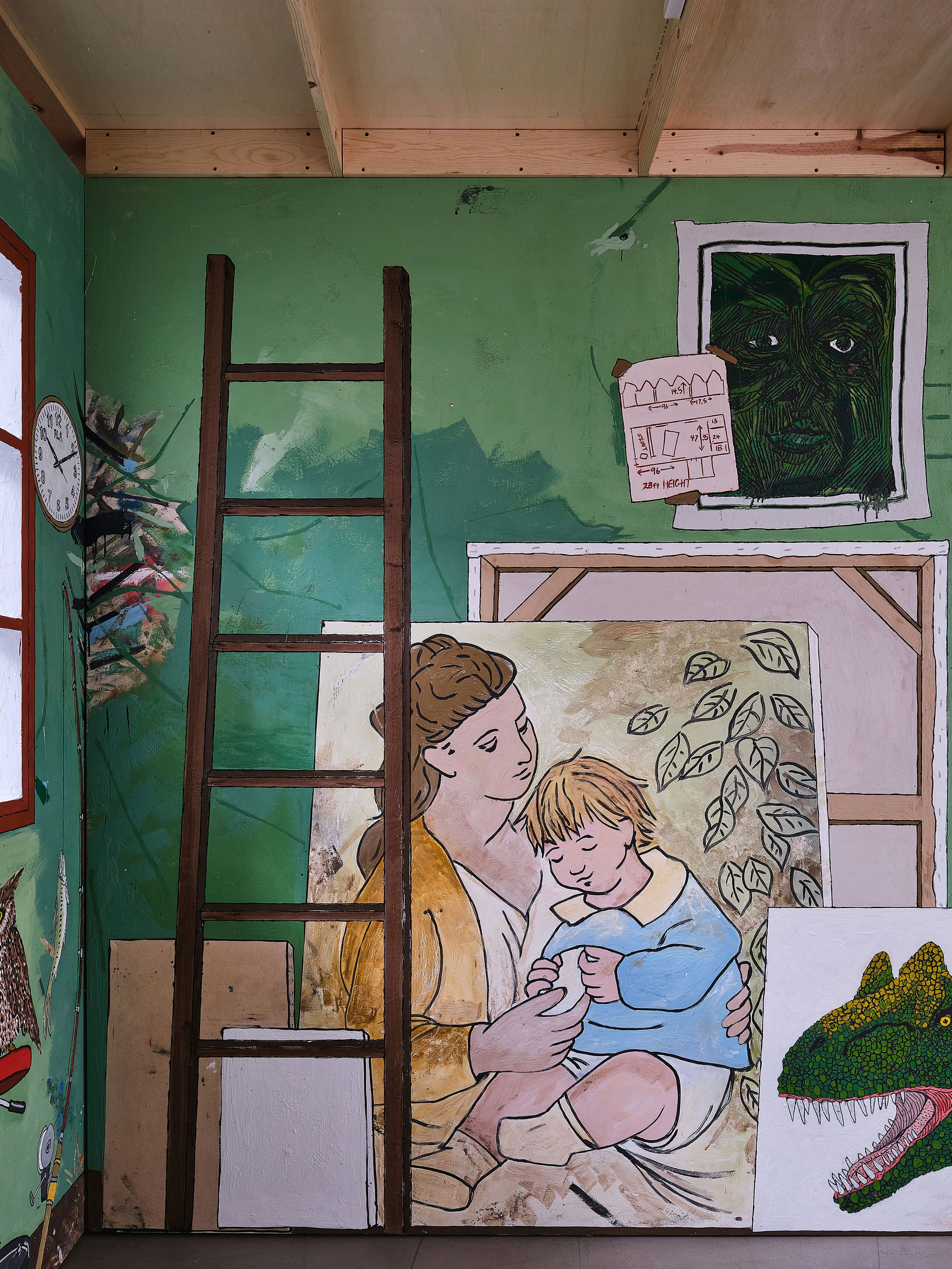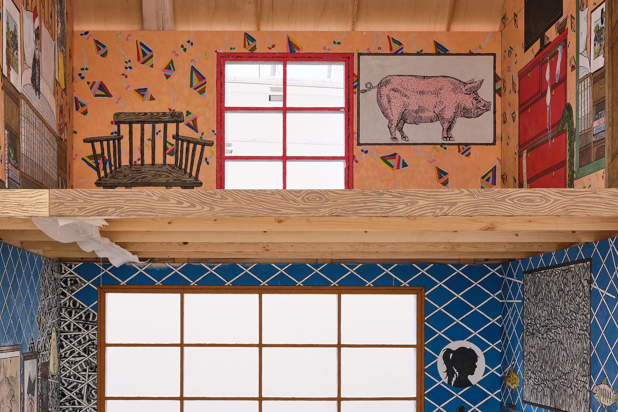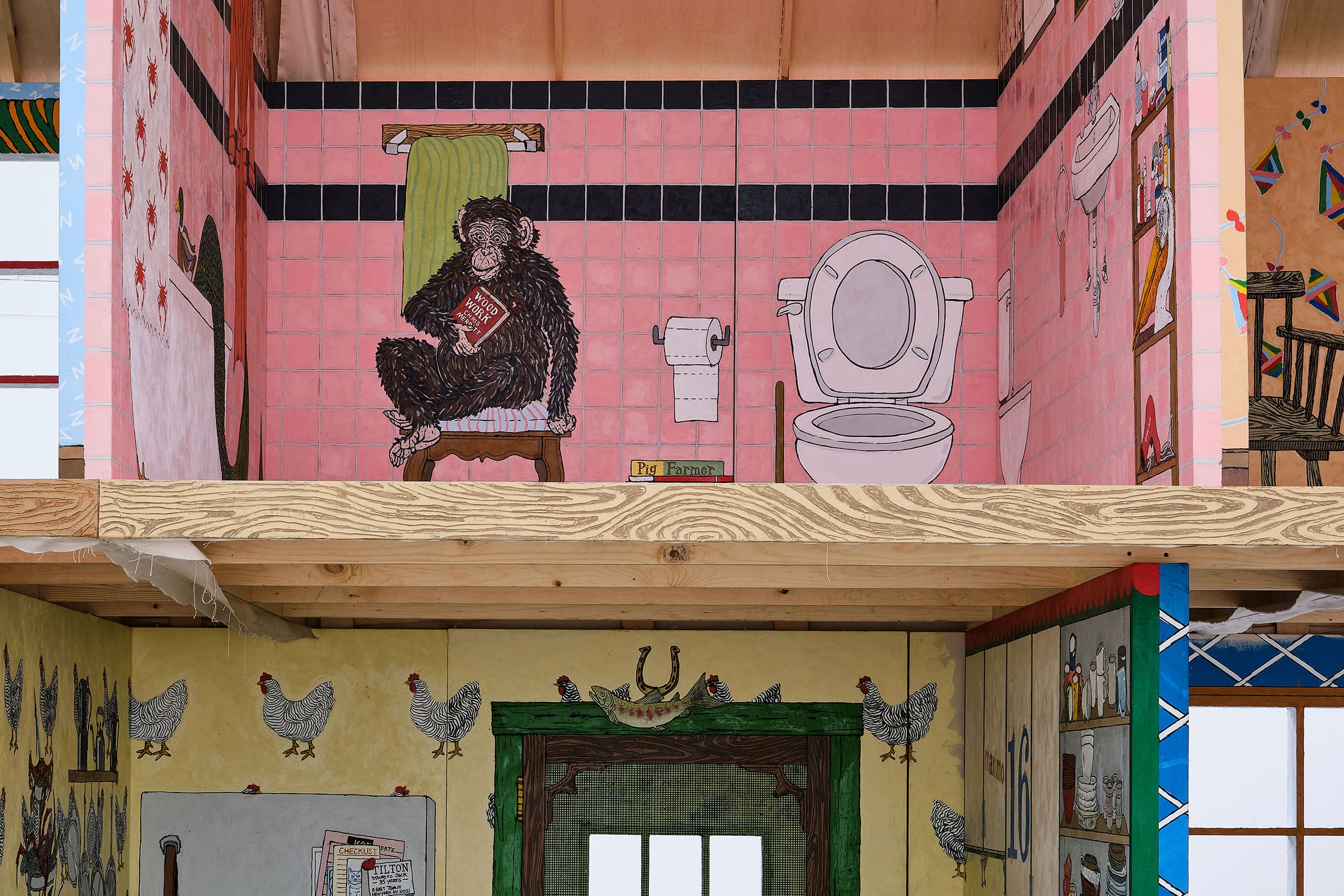 Hence, for 15 years he dreamed of bringing the house to life and to its full potential. Instead of recreating a version of the house in a painting, Armstrong decided to make a life-size installation, which contains both an elaborately painted outdoor facade and the interior part.