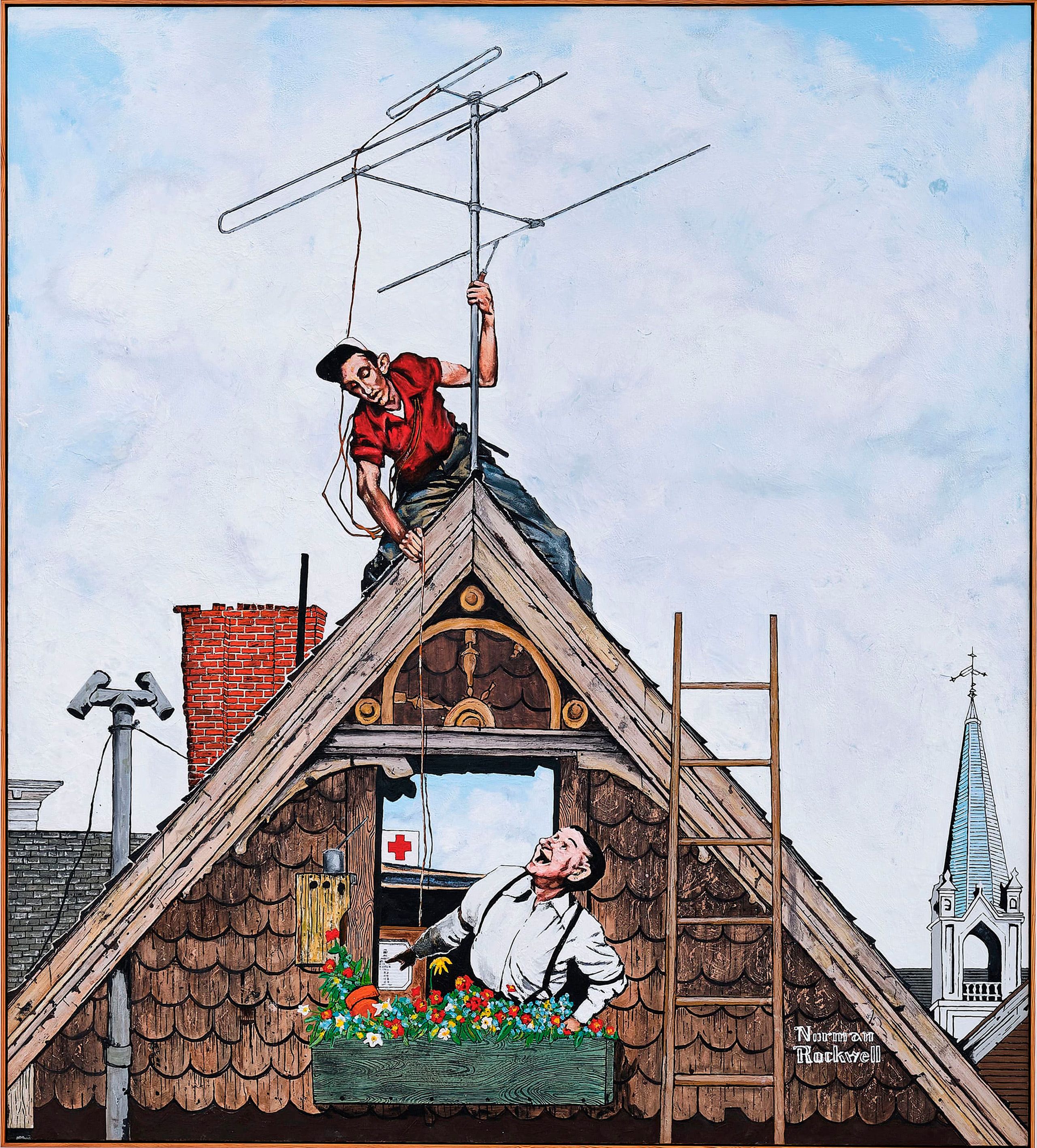 The original painting by Norman Rockwell that Armstrong references is called New Television Antenna. It appeared on the cover of The Saturday Evening Post published on November 5, 1949.