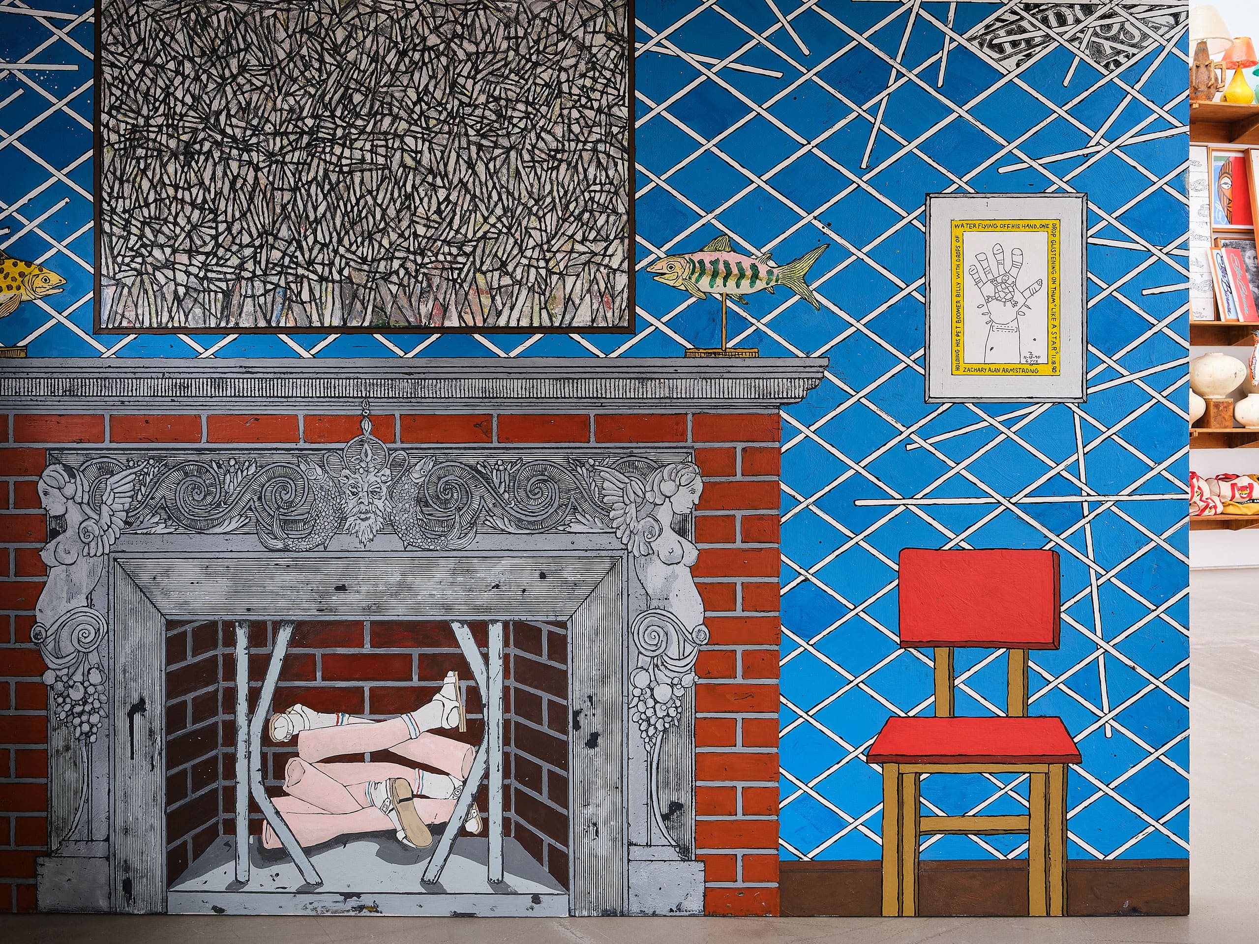 For the exhibition, Armstrong has created a new body of work, including bags stuffed with hand-crafted wax candles, a life-size bronze cast of a t-rex skull and a walk-in model of a doll house built of wax painted canvases. The result is a vast assemblage of remarkable objects – a contemporary Wunderkammer - spanning from Armstrong’s densely storied drawings to his simple pottery work and naive cartoonish imagery of his wax paintings and sculptural works.