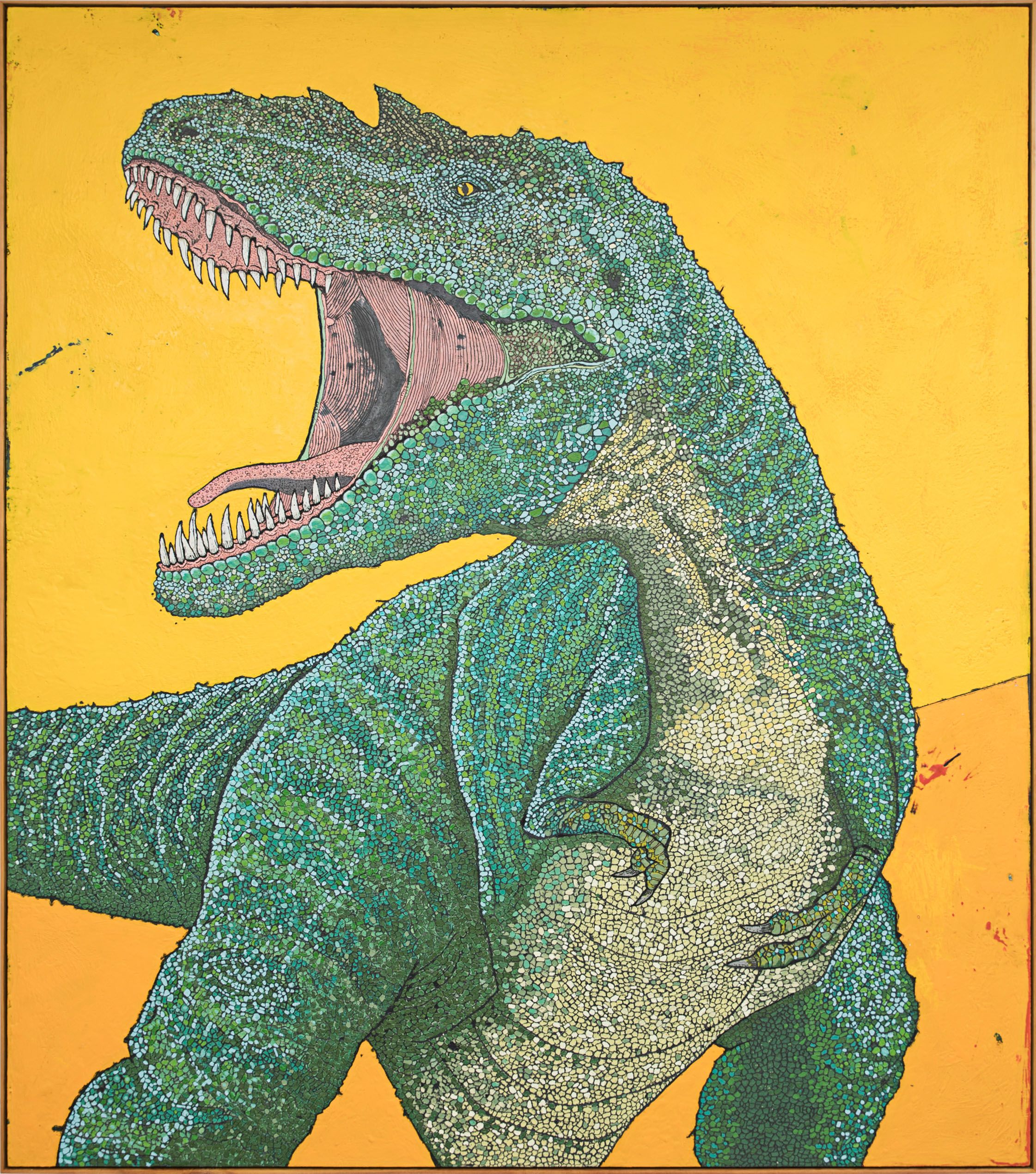 The dinosaur image is a beloved motif by Armstrong, since he has both created paintings with and named an exhibition after the extinct animal. For Armstrong, repetition is an important part of his practice and the artist often reiterates the same subjects, repeating what works and striving to always make some improvements. With the t-rex scull, Armstrong has taken another step in repeating the image of the dinosaur.