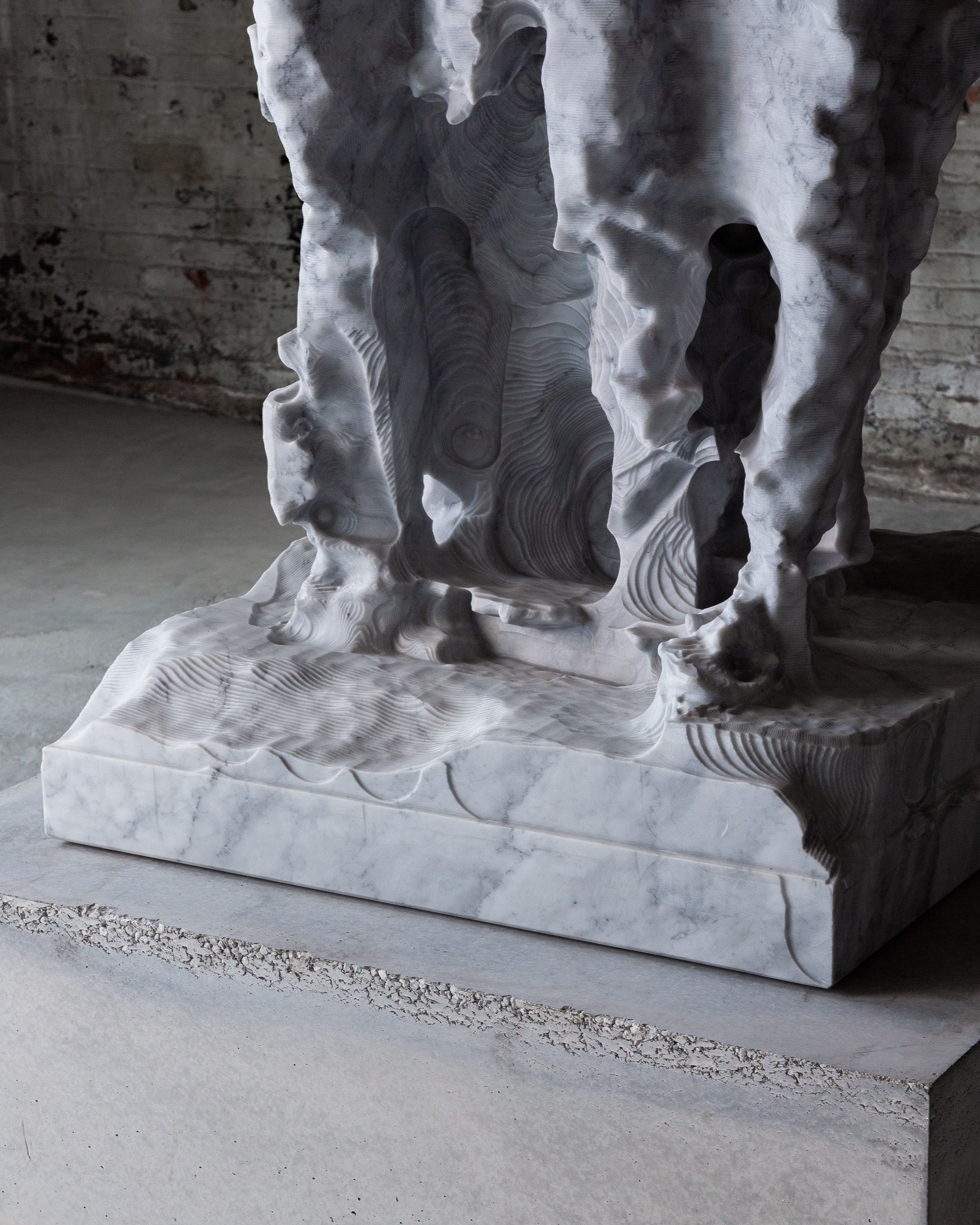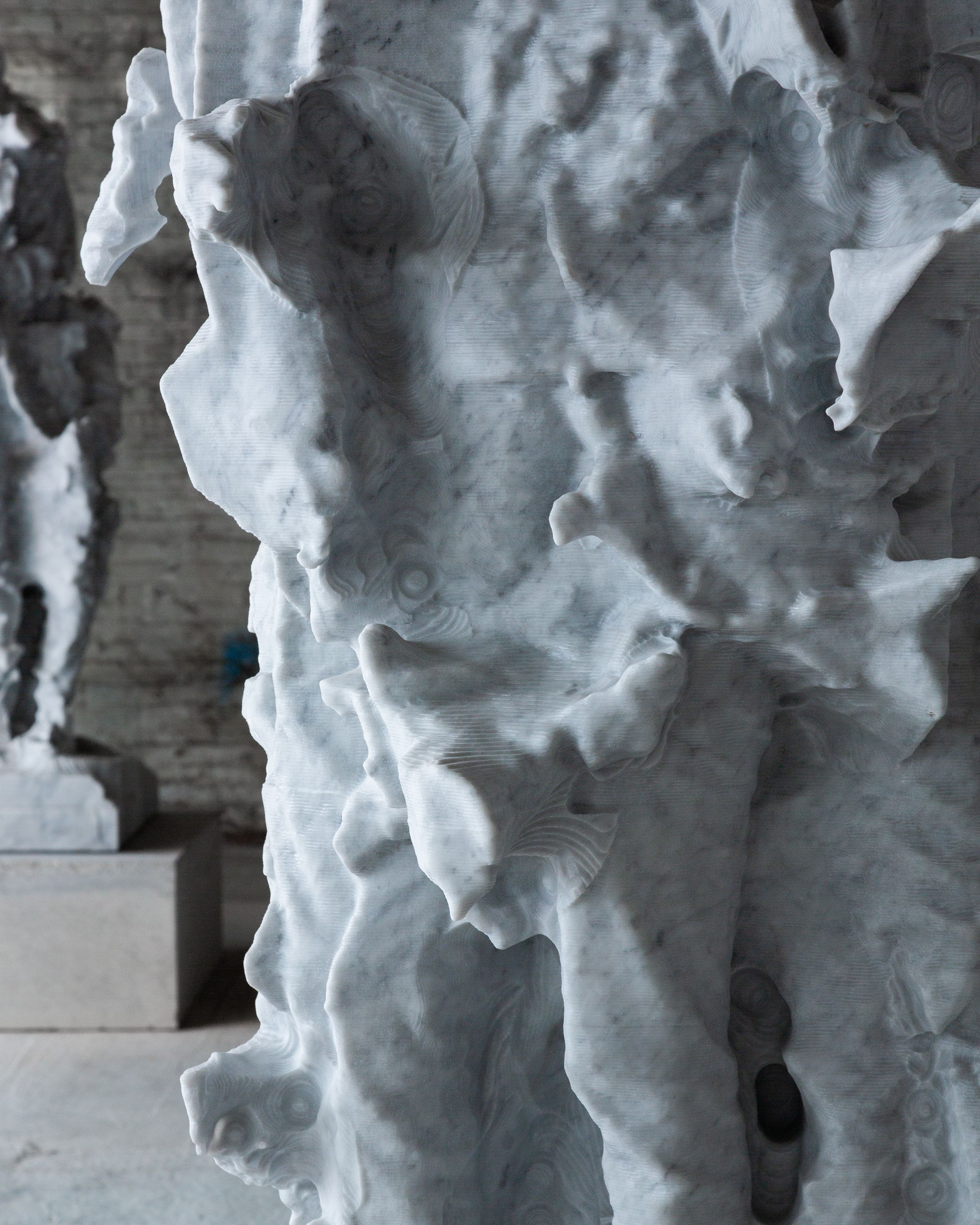 "The sculptures are new archetypes for our digital era. Intentionally, I excluded my own hands in the sculpting process, allowing the computer to manifest itself in the carving of the works"