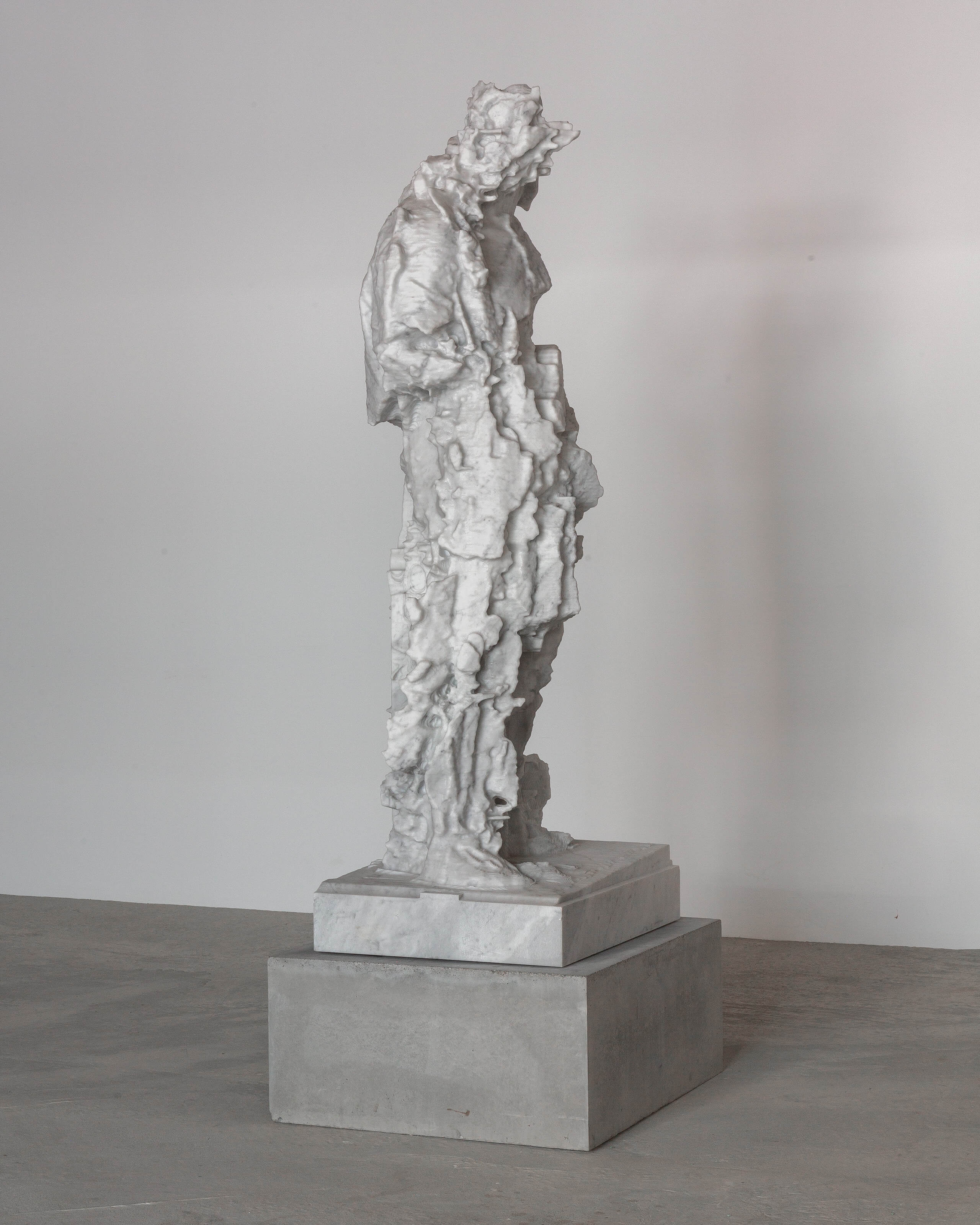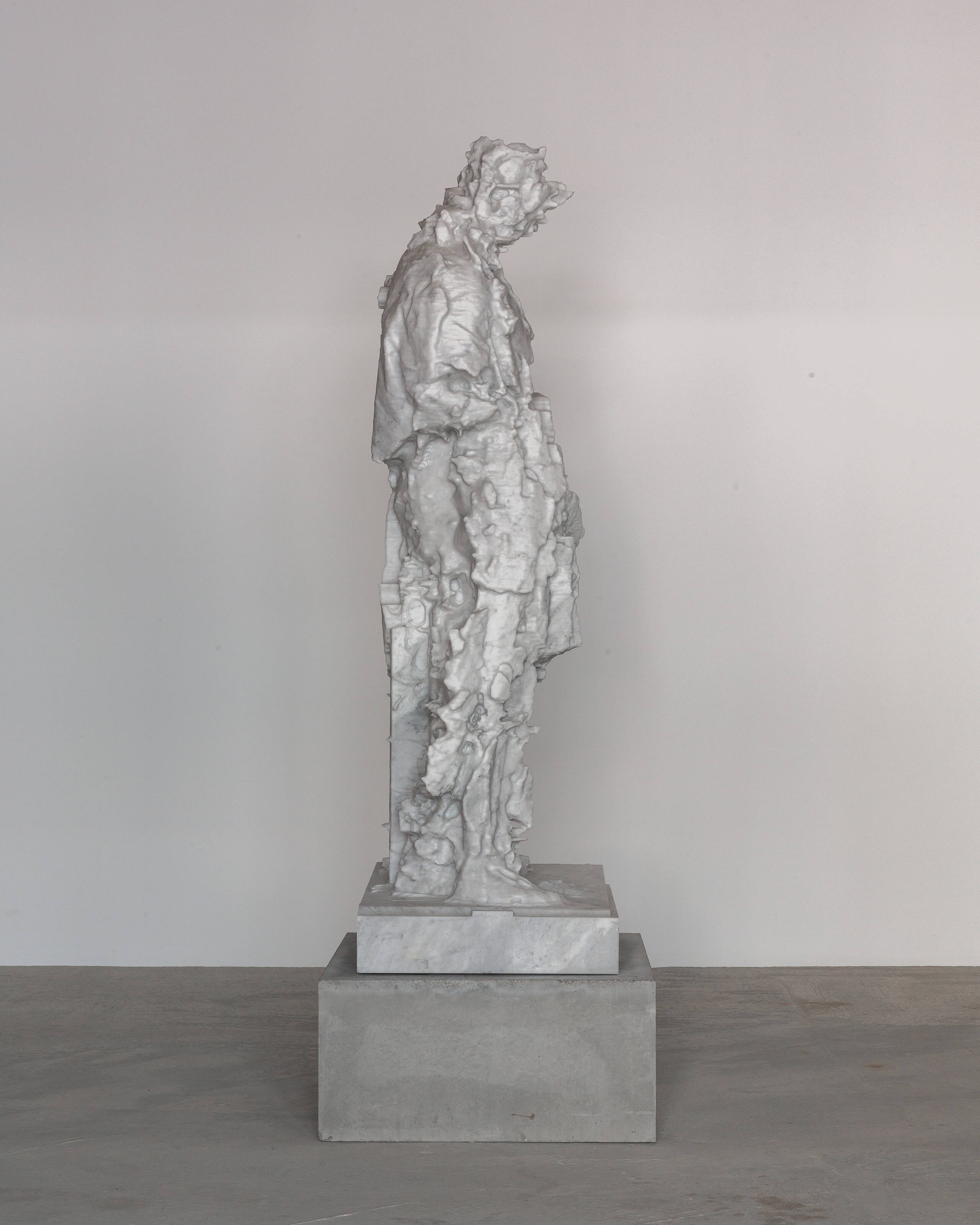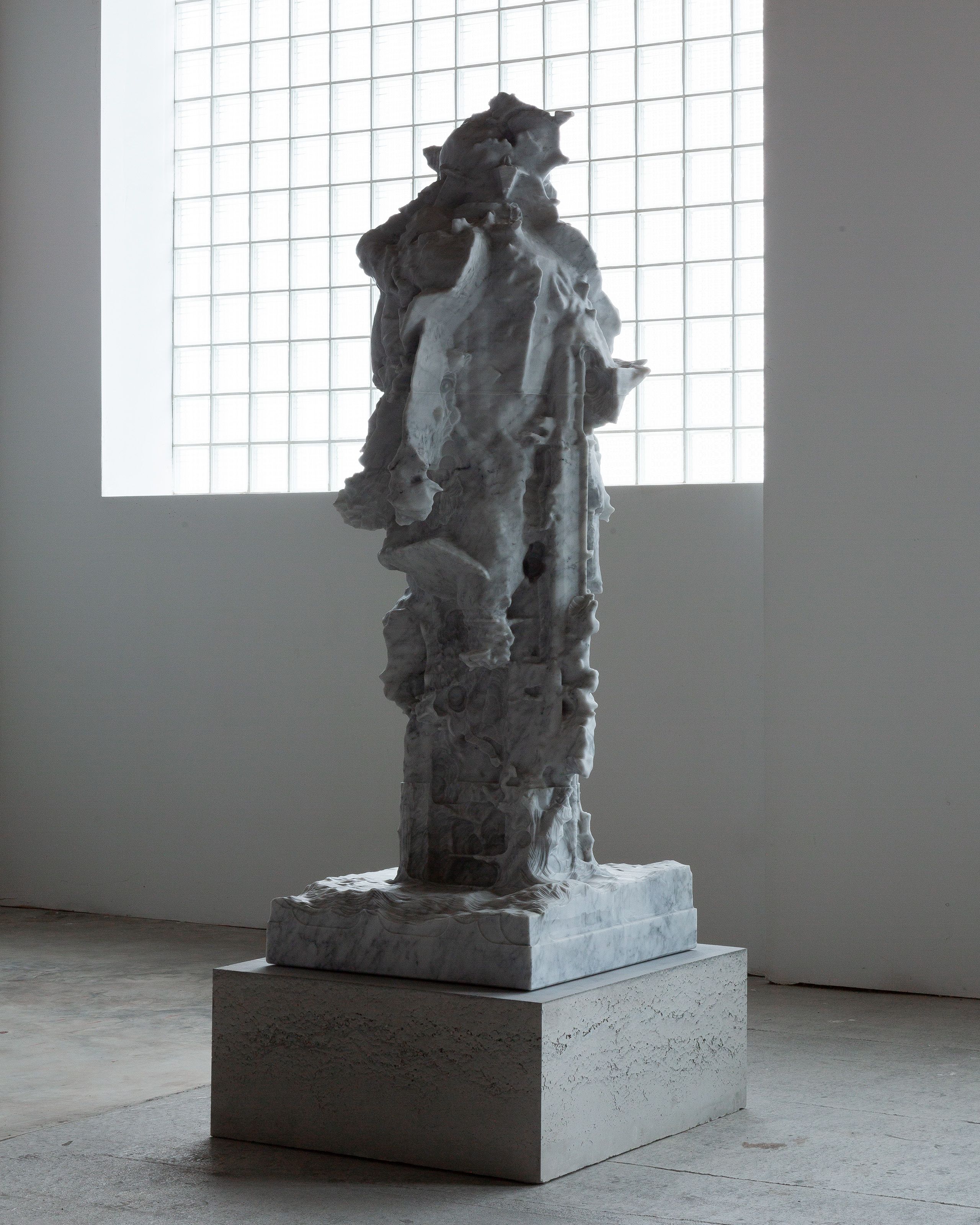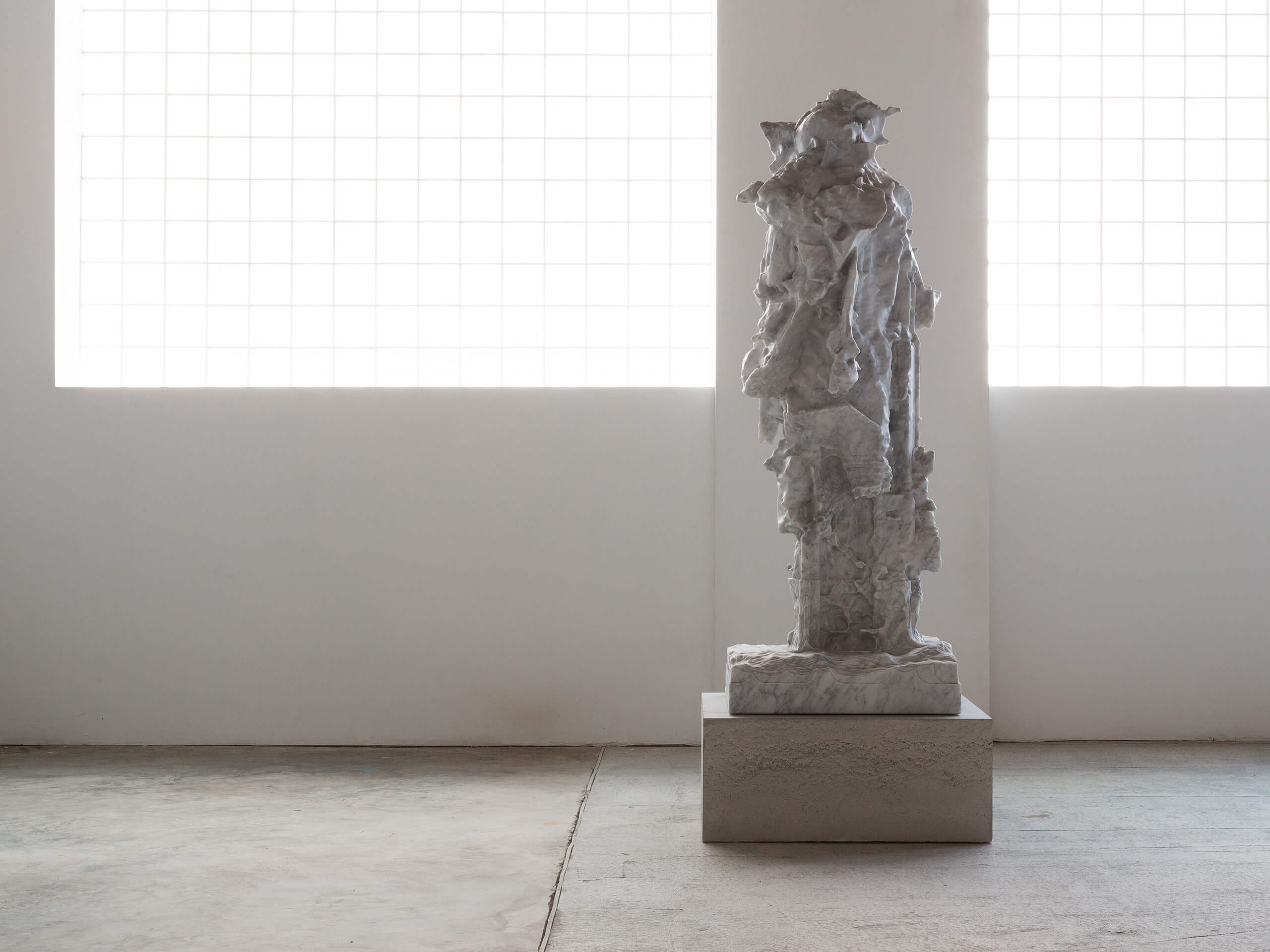 In The Last of Us, Christian Lemmerz unfolds a new method of working with marble sculpture combining 3D scanning, algorithms, and machining, with a human touch that challenges and distorts the process. The exhibition comprises one bust and five full-body ghostly variations of the human figure, which blend traditions of marble sculpture-making with the digital era.