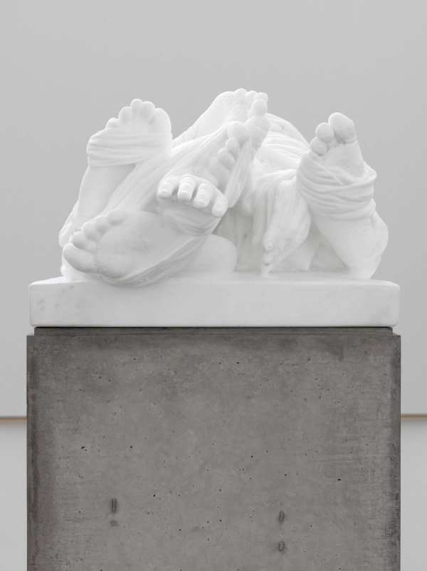 Christian Lemmerz has created three large white marble sculptures, which combine the classic, white aesthetic with a morbid theme, which in turn challenges the notions of art, beauty and death. Lemmerz’s sculptures draw the observers closer and seduce them. At first glance, however, the impressive technique seems to be overshadowed by the works’ raw brutal themes: for example, death, crucifixion and mutilation. The result is a contrast between the stunning and the terrible in a transgressive aesthetic, which is beautifully immortalised in marble. In his colourful, powerful works, Norbert Tadeusz portrays slaughtered animal carcasses and exposed human bodies. His paintings are the result of his studies of the exhibited and exposed body, which is depicted in the colourful and dynamic pictorial works. Tadeusz was inspired by everyday impressions, but gave those motives a surreal twist, which made his paintings ambiguous and more profound, and created a narrative of life.