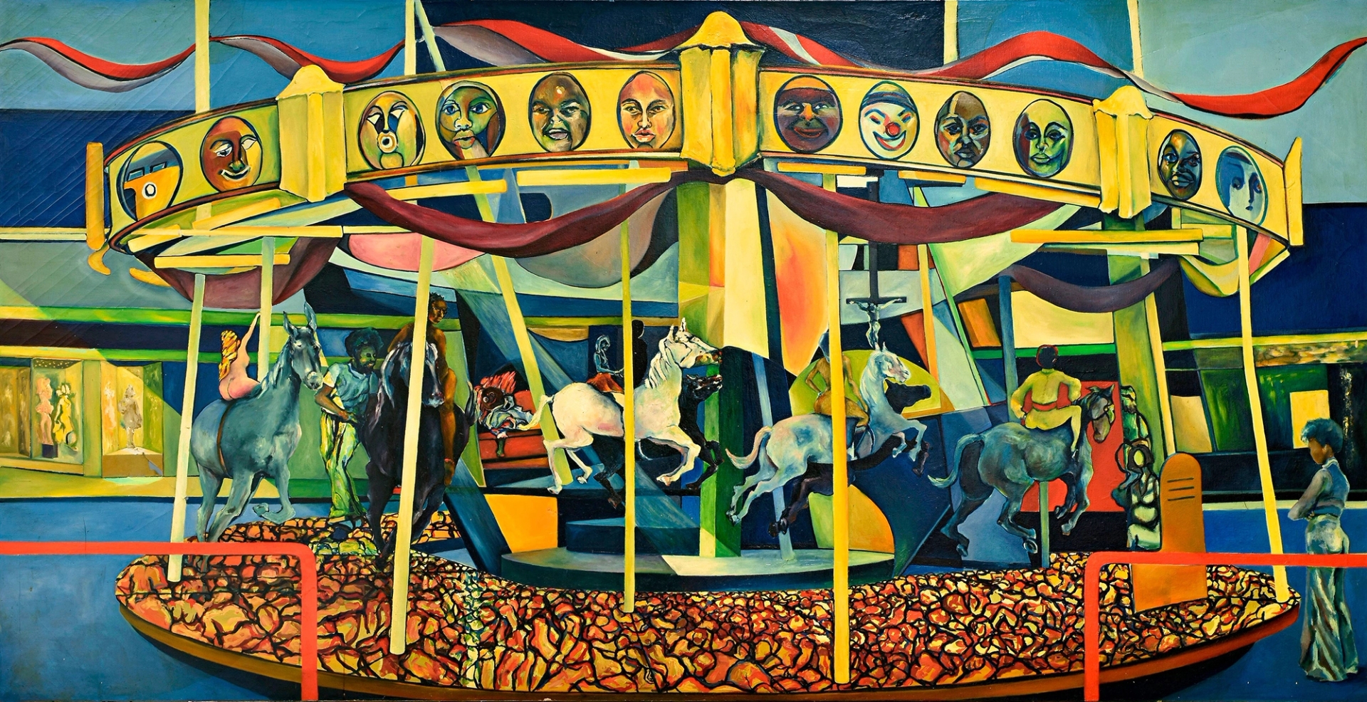 Comprising a selection of Barnes’ portraits and self-studies, We Wear the Mask introduces Barnes as an experimental colorist admired by his students for limited yet powerful palettes. The yellows, blues, and reds in his subjects’ faces speak to the lyricism and freewheeling embrace of abstraction found in Barnes’ work. His mask-like portraits reveal subjects close to the artist who he represented vulnerably and honestly. In these paintings, Barnes opens our eyes to the structures that we find ourselves in, freeing ourselves from the masks behind which we dream, cry and smile.