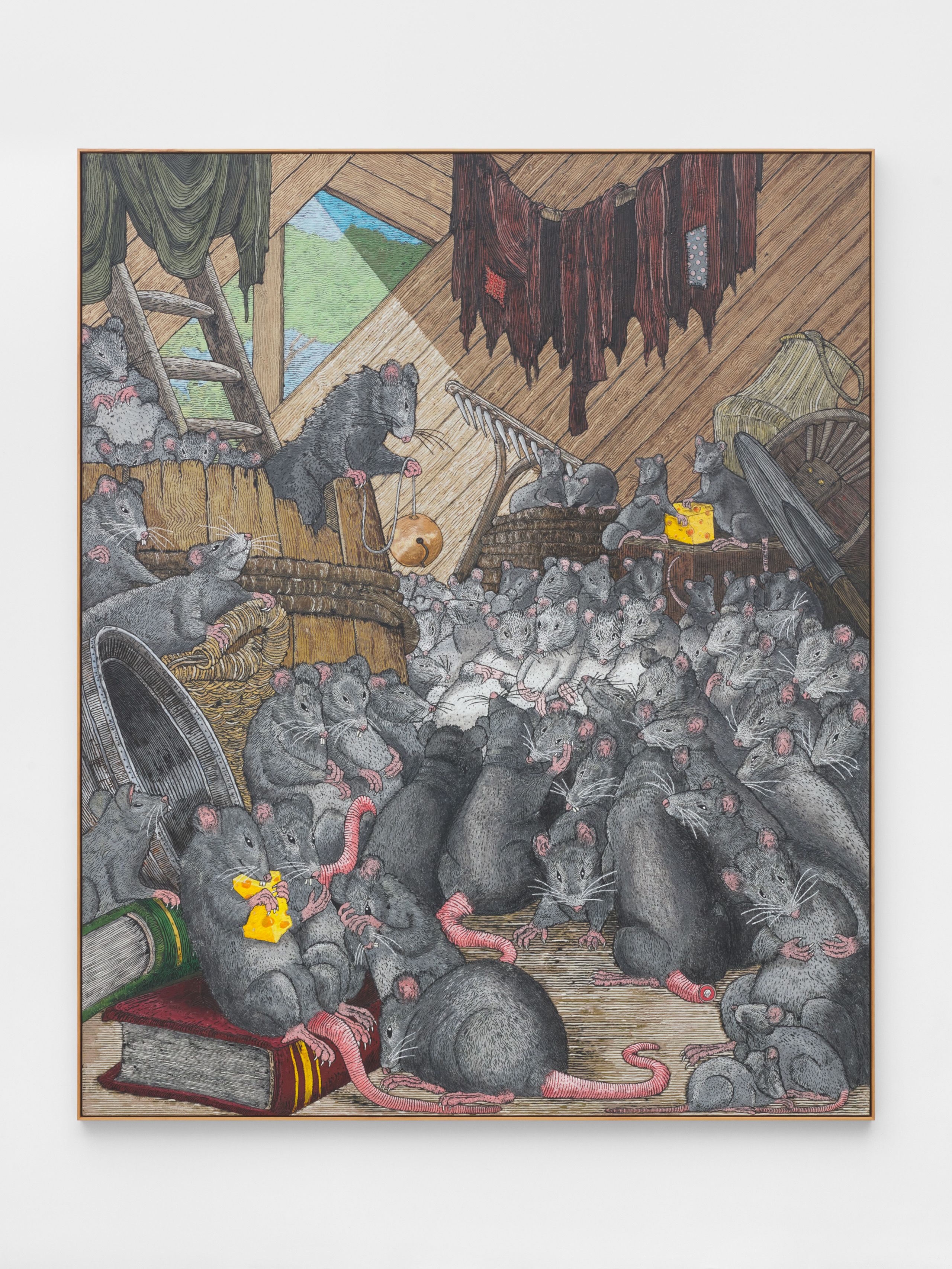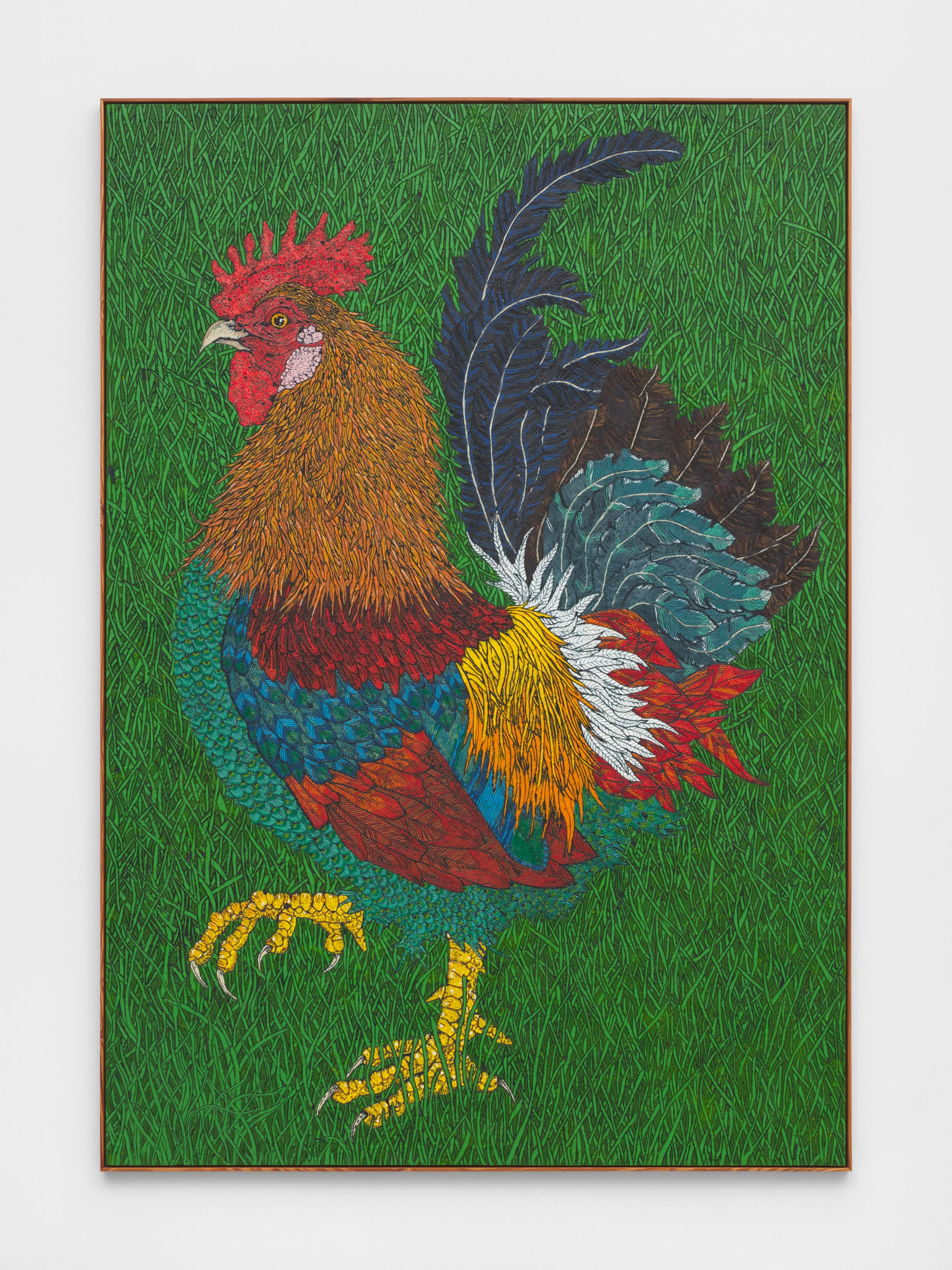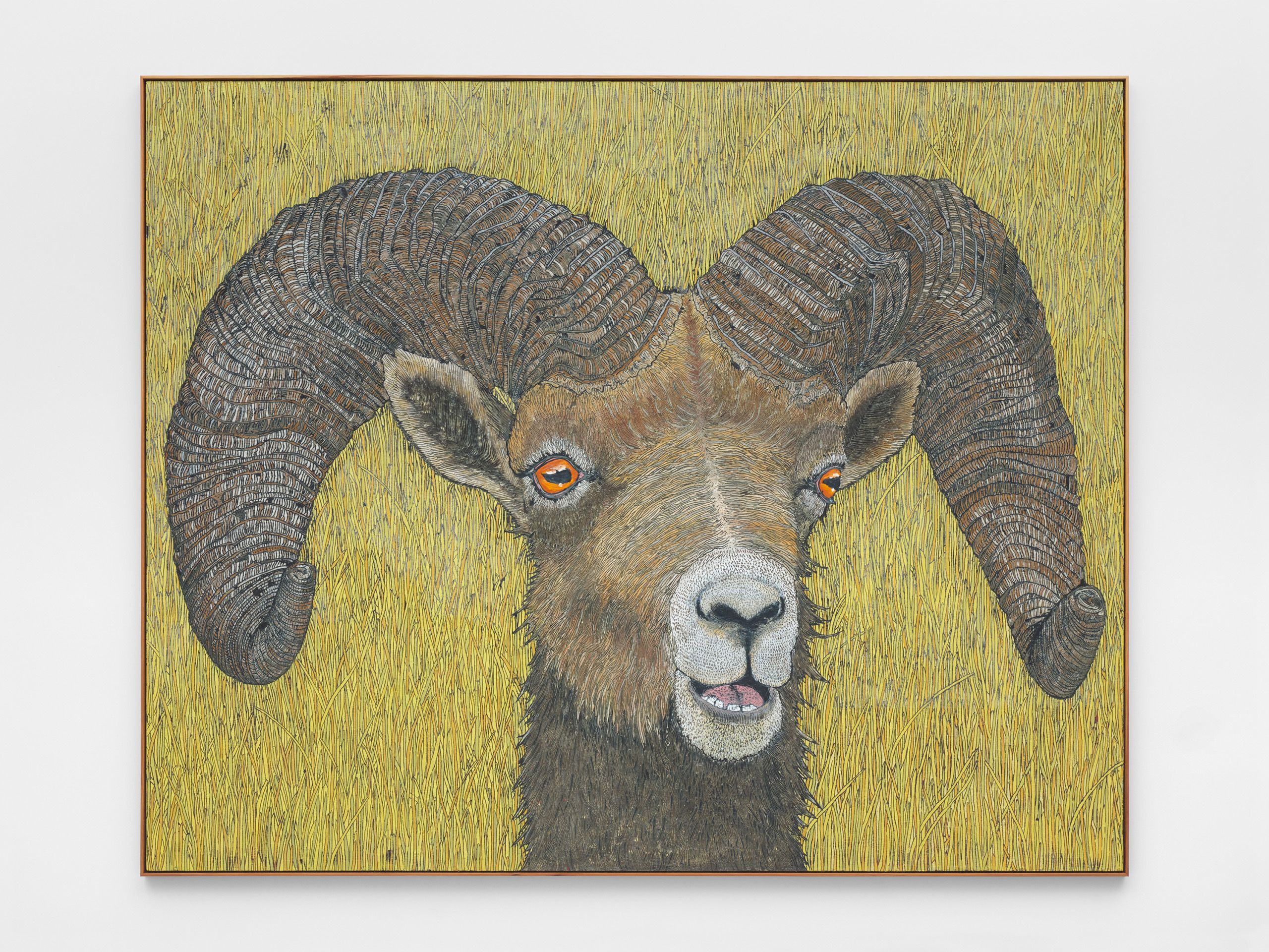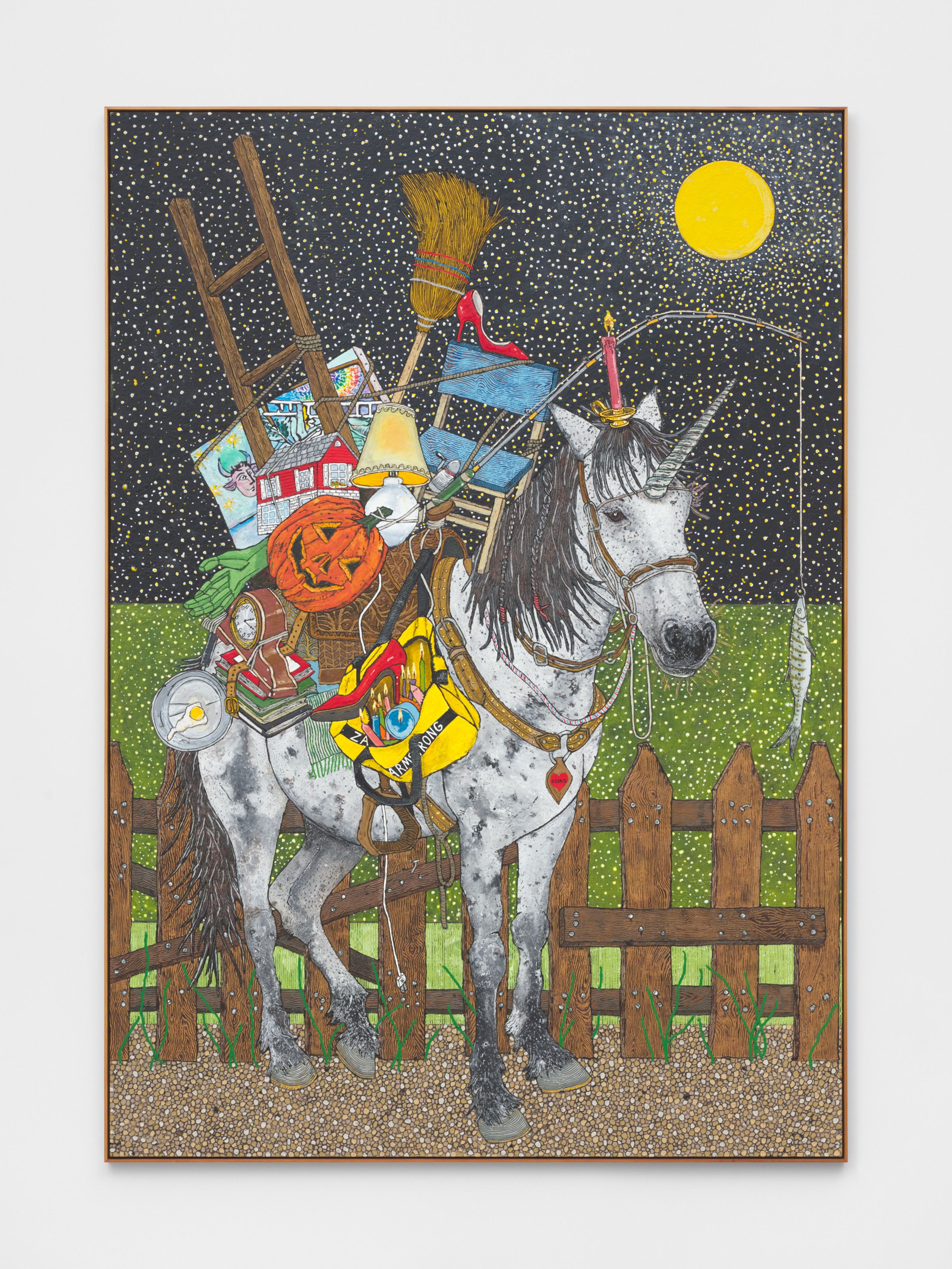 Armstrong started work on Twelve Animals during the first Covid-19 lockdowns in America, attempting to experiment freely in his studio during a time of unprecedented limitations and restrictions. After years producing paintings, sculptures, and installations that vary in visual language but often riff on childhood memories, appropriated images, Americana, and reimagined compositions, Armstrong’s exploration of animal figuration relates to his previous work but is also somewhat unexpected in its singular focus. The group of paintings is the largest the artist has created to date and explores scale, nostalgia, and animal portraiture through the depictions of twelve different animal characters.
