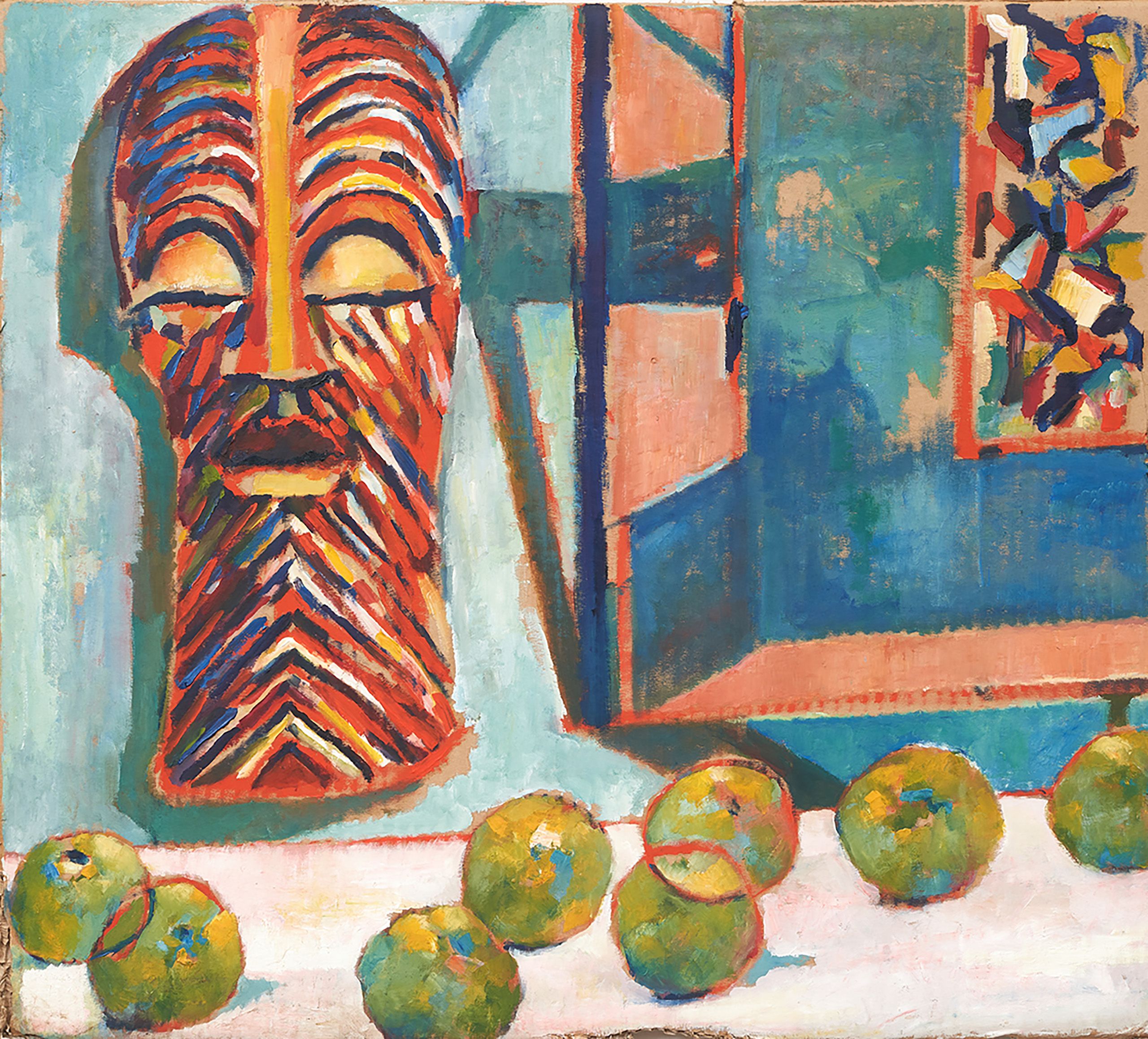 Taking its title from an 1895 poem of the same name by Paul Lawrence Dunbar, We Wear the Mask explores the interplay between face and mask in Barnes’ works. For Barnes, the mask as ritual object, image, and emblem of African culture became an effective expression of the African American spirit. By painting African masks into his portraits, Barnes reconnected the masks with the cultural history of Black faces, reclaiming control over representations of his culture and experience. As the artist expressed it, with the mask he could “hold on to the Africanness of the image.”